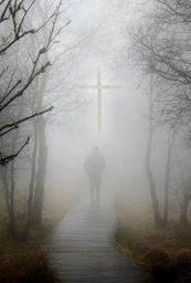 Keywords: mourning fog condolences autumn forest mood cross background