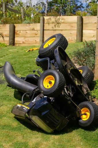 Keywords: mower lawn accident ride-on overturn garden backyard escape upside-down