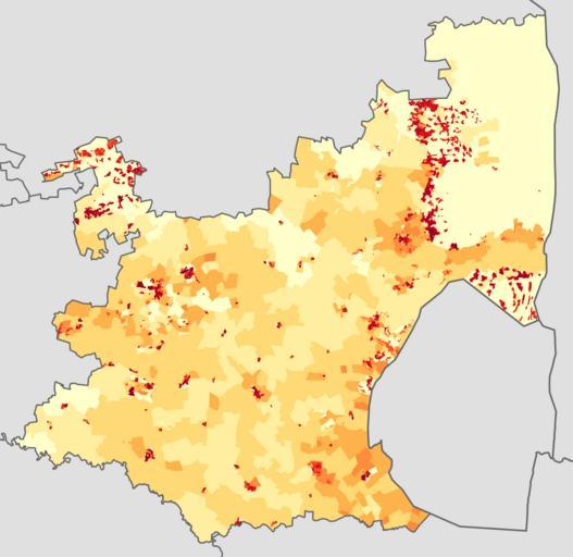 | Keywords: Mpumalanga 2011 population density map.svg ffffcc <1 inhabitant/km² ffeda0 1 “3 inhabitants/km² fed976 3 “10 inhabitants/km² feb24c 10 “30 inhabitants/km² fd8d3c 30 “100 inhabitants/km² fc4e2a 100 “300 inhabitants/km² e31a1c 300 “1000 inhabitants/km² bc0026 1000 “3000 inhabitants/km² 800026 >3000 inhabitants/km² Projection is Albers Equal-Area Conic with standard parallels at 25 5° S and 31 5° S and origin at 28 5° S 25 5° E Statistics South Africa's Census 2011 is the source of the basic population data The map results from my own processing of the data Htonl 2013-10-22 http //beta2 statssa gov za/ page_id 425 The following license applies to the population data on which the map is based the user acknowledges Stats SA as the source of the basic data wherever they process apply utilise publish or distribute the data and also that they specify that the relevant application and analysis where applicable result from their own processing of the data The following tag applies to the map itself Demographic maps of South Africa Maps of Mpumalanga |