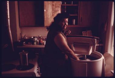 | Keywords: MRS. MAY WATKINS DOES THE FAMILY WASH IN THE KITCHEN OF THEIR NEW HOME. THEY WERE FORCED TO MOVE WHEN THEIR OLD HOUSE... - NARA - 557356.jpg Scope and content General notes 557356 Local identifier 412-DA-14904 Environmental Protection Agency 12/02/1970 - NARA-Author Paik Kenneth 1940-2006 Photographer 8464462 <br /> Kansas City Wyandotte county Kansas United States North and Central America inhabited place 3330045 39 1 -94 617 <br /> Still Picture Records Section Special Media Archives Services Division NWCS-S National Archives at College Park 8601 Adelphi Road College Park MD 20740-6001 05/1975 Record group Record Group 412 Records of the Environmental Protection Agency 1944 - 2006 Record group ARC 708 DOCUMERICA The Environmental Protection Agency's Program to Photographically Document Subjects of Environmental Concern compiled 1972 - 1977 Series ARC 542493 File unit File unit ARC Variant control numbers Agency-Assigned Identifier 249/24/014904<br /> NAIL Control Number NWDNS-412-DA-14904 Other versions <gallery> File MRS _MAY_WATKINS_DOES_THE_FAMILY_WASH_IN_THE_KITCHEN_OF_THEIR_NEW_HOME _THEY_WERE_FORCED_TO_MOVE_WHEN_THEIR_OLD_HOUSE _-_NARA_-_557356 tif tif File MRS _MAY_WATKINS_DOES_THE_FAMILY_WASH_IN_THE_KITCHEN_OF_THEIR_NEW_HOME _THEY_WERE_FORCED_TO_MOVE_WHEN_THEIR_OLD_HOUSE _-_NARA_-_557356 jpg jpg </gallery> NARA-cooperation PD-USGov Kenneth Paik Mulkey Square neighborhood in 1973 Washing laundry Washing machines |