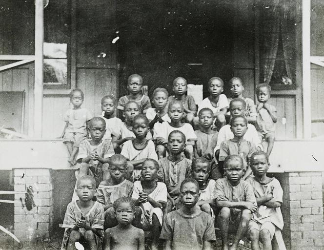 | Keywords: Mrs Padfield's class, Congo, ca. 1900-1915 (IMP-CSCNWW33-OS11-54).jpg en Mrs Padfield's class Congo ca 1900-1915 Black and white lantern slide showing a group of Congolese boys aged from around four to twelve years of age sitting on the wooded steps of a Congo Balolo Misison building The boys wear shirts and shorts although one boy in the front row of the picture is bare-chested The slide is captioned MRS PADFIELD'S CLASS Charles Padfield and his wife were early Congo Balolo Mission missionaries working in the early twentieth century at the Baringa mission station This slide comes from a collection generated by missionaries working for the Congo Balolo Mission a mission begun in 1889 under the supervision of the East London Training Institute for Home and Foreign Missions that developed into the interdenominational evangelical mission Regions Beyond Missionary Union after 1900 Photographer Unknown Filename IMP-CSCNWW33-OS11-54 tif Coverage date 1900/1915 Subject unesco Boys Part of collection International Mission Photography Archive ca 1860-ca 1960 Part of subcollection Photographs from the Centre for the Study of World Christianity University of Edinburgh U K ca 1900-ca 1940s Subject corporate name Congo Balolo Mission Repository name Centre for the Study of World Christianity Archival file Volume2/IMP-CSCNWW33-OS11-54 tif Repository address The University of Edinburgh School of Divinity New College Mound Place Edinburgh EH1 2LX United Kingdom Geographic subject country Congo Format aacr2 lantern slides 8 2 x 8 2cm Geographic subject continent Africa Rights Contact the repository for details Part of series Regions Beyond Missionary Union Congo People and Places CSCNWW33/OS11 Repository email divinity-CSWC ed ac uk Date created 1900/1915 Publisher of the digital version University of Southern California Libraries Subject aat genre group portraits Format aat lantern slides; photographs Access conditions http //www ed ac uk/schools-departments/divinity/research/centres/world-christianity/collections-resources Geographic subject educational facilities File CSCNWW33/OS11/54 Subject lcsh Religious education 1900/1915 date created author http //digitallibrary usc edu/cdm/ref/collection/p15799coll123/id/78113 PD-old-70-1923 Children of the Democratic Republic of the Congo Boys Boys of Africa 1910s Congo-Balolo Mission Schools in the Democratic Republic of the Congo History of the Democratic Republic of the Congo 1910s Magic lantern images Images from USC Digital Library uploaded by Fæ International Mission Photography Archive ca 1860-ca 1960 |