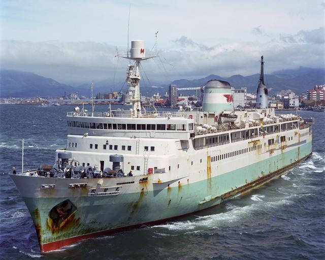 Keywords: MS MATSUMAE MARU 2.jpg en The Japanese National Railways train ferry between Aomori and Hakodate MS MATSUMAE MARU 2 arriving at Aomori port No 2 Pier ja 森第2岸壁に 岸しつつある国鉄 函 絡船 2代目 前丸 Akoihsin Akoihsin 1980 08 03 Train ferries JNR Seikan Ferry Port of Aomori Cc-zero |