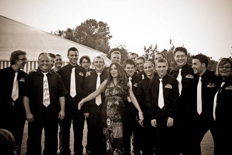Keywords: Msbigband-segara.jpg fr Le MS Bigband en Compagnie d' Hélène Segara lors d'un concert à Barlin le 13 juillet 2009 own Antoined62 2009-07-13 Jazz ensembles from France Men wearing neckties