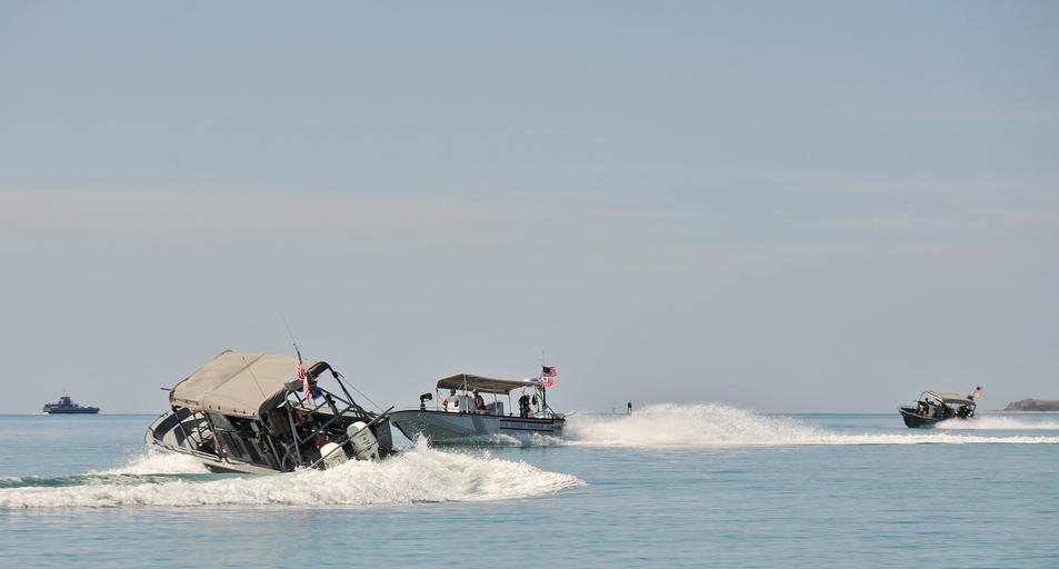 Keywords: MSST San Diego Level 2 Tactics GTMO 120214-N-RF645-097.jpg en Fast boat teams assigned to he United States Coast Guard Maritime Safety and Security Team MSST San Diego apply their tactics training in Guantanamo Bay The Opposing Forces OPFOR boat middle simulates a breached 500 yard security zone of a high valued asset and the Reaction and Screen vessels go in and determine the OPFOR ™s intent MSST San Diego provides 24-hour security to both the Joint Task Force and Naval Station 2012-02-10 Petty Officer 2nd Class Kilho Park https //www dvidshub net/image/524721 120214-N-RF645-097 2012-02-14 17 33 GUANTANAMO BAY CU PD-USGov-Military-Navy Guantanamo Bay Images from DoD uploaded by Fæ |