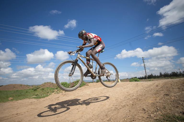 | Keywords: outdoor bike vehicle sport KENYA, Laikipia: In a photograph taken by Make it Kenya 24 November 2015, a rider jumps over a mound along a cross-country course near Timau town in Laikipia County, 250km north of the Kenyan capital Nairobi, on the fourth and final day of the Mt. Kenya Epik cycling challenge. The 4-day mountain biking adventure challenge race circumnavigates the Mount Kenya region and this inaugural event attracted both Kenyan and international riders from as a far afield as Norway and Japan. The Epik was established to attract sports tourism to the Mt. Kenya region and showcase what it has to offer the outdoor, extreme sports enthusiast while providing riders the opportunity to interact with local communities and witness some of the beautiful scenery and landscapes surrounding Mt. Kenya that otherwise might not seen. The two-man team of Kenyan riders Joseph Echuwa and Samwel Mwangi won the 300km, 4-day race crossing the finish line in 10hrs 31mins and 05secs. MANDATORY CREDIT MAKE IT KENYA PHOTO / STUART PRICE. KENYA, Laikipia: In a photograph taken by Make it Kenya 24 November 2015, a rider jumps over a mound along a cross-country course near Timau town in Laikipia County, 250km north of the Kenyan capital Nairobi, on the fourth and final day of the Mt. Kenya Epik cycling challenge. The 4-day mountain biking adventure challenge race circumnavigates the Mount Kenya region and this inaugural event attracted both Kenyan and international riders from as a far afield as Norway and Japan. The Epik was established to attract sports tourism to the Mt. Kenya region and showcase what it has to offer the outdoor, extreme sports enthusiast while providing riders the opportunity to interact with local communities and witness some of the beautiful scenery and landscapes surrounding Mt. Kenya that otherwise might not seen. The two-man team of Kenyan riders Joseph Echuwa and Samwel Mwangi won the 300km, 4-day race crossing the finish line in 10hrs 31mins and 05secs. MANDATORY CREDIT MAKE IT KENYA PHOTO / STUART PRICE. |