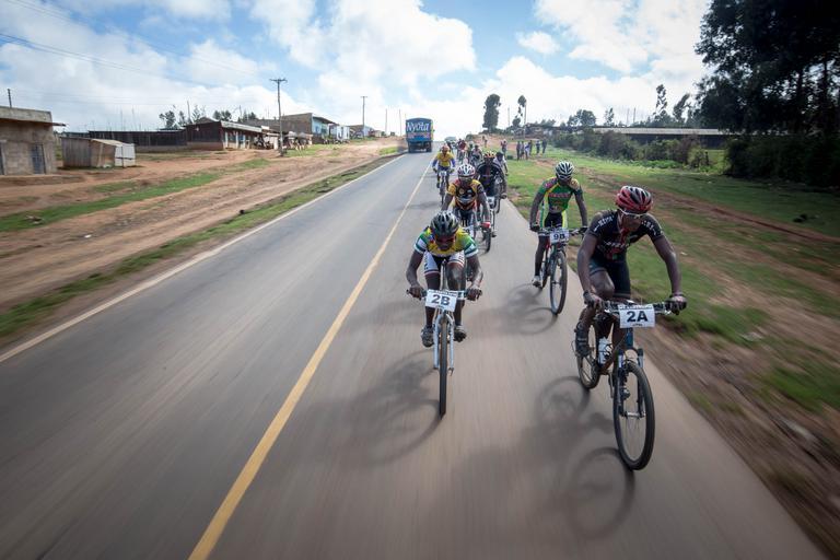 | Keywords: road outdoor freeway KENYA, Laikipia: In a photograph taken by Make it Kenya 24 November 2015, riders cycle in a group downhill towards Timau town in Laikipia County, 250km north of the Kenyan capital Nairobi, on the fourth and final day of the Mt. Kenya Epik cycling challenge. The 4-day mountain biking adventure challenge race circumnavigates the Mount Kenya region and this inaugural event attracted both Kenyan and international riders from as a far afield as Norway and Japan. The Epik was established to attract sports tourism to the Mt. Kenya region and showcase what it has to offer the outdoor, extreme sports enthusiast while providing riders the opportunity to interact with local communities and witness some of the beautiful scenery and landscapes surrounding Mt. Kenya that otherwise might not seen. The two-man team of Kenyan riders Joseph Echuwa and Samwel Mwangi won the 300km, 4-day race crossing the finish line in 10hrs 31mins and 05secs. MANDATORY CREDIT MAKE IT KENYA PHOTO / STUART PRICE. KENYA, Laikipia: In a photograph taken by Make it Kenya 24 November 2015, riders cycle in a group downhill towards Timau town in Laikipia County, 250km north of the Kenyan capital Nairobi, on the fourth and final day of the Mt. Kenya Epik cycling challenge. The 4-day mountain biking adventure challenge race circumnavigates the Mount Kenya region and this inaugural event attracted both Kenyan and international riders from as a far afield as Norway and Japan. The Epik was established to attract sports tourism to the Mt. Kenya region and showcase what it has to offer the outdoor, extreme sports enthusiast while providing riders the opportunity to interact with local communities and witness some of the beautiful scenery and landscapes surrounding Mt. Kenya that otherwise might not seen. The two-man team of Kenyan riders Joseph Echuwa and Samwel Mwangi won the 300km, 4-day race crossing the finish line in 10hrs 31mins and 05secs. MANDATORY CREDIT MAKE IT KENYA PHOTO / STUART PRICE. |