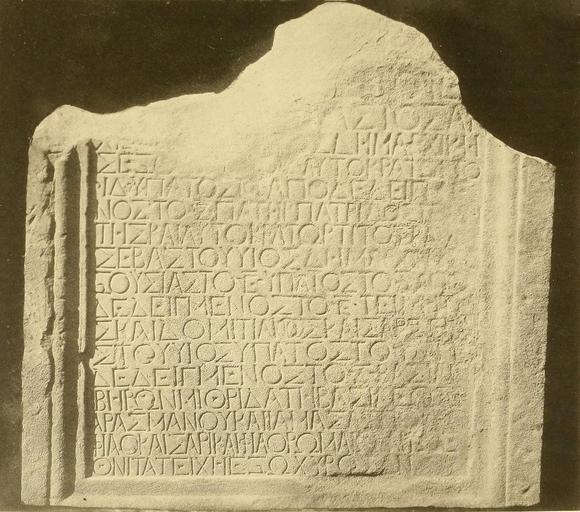 | Keywords: Mtskhet stella - Greek text.jpg ΑΔ ΥΠΑ ΤΟΣΤΟ F ΑΠΟΔΕΔΕΙΓ Ε ΟΣΤΟ Ζ ΠΑΤΗΡ ΠΑΤΡΙΔΟ ΤΗΣ ΚΑΙ ΑΥΤΟΚΡΑΤΩΡ ΤΙΤΟ ΣΕΒΑΣΤΟΥ ΥΙΟΣ ΞΟΥΣΑΣΤΟ Ε ΥΠΑ ΤΟΣΤΟ Δ ΑΠΟ ΔΕΔΕΙΓ Ε ΟΣΤΟ E Τ ΣΚΑΙ ΔΟ ΙΤΙΛΙΘΟΣ ΚΑΙΣΑΡ ΣΤΟΥ ΥΙΟΣ ΥΠΑ ΤΟΣΤΟ Γ ΑΠΟ ΔΕΔΕΙΓ Ε ΟΣΤΟ Δ ΒΑΣΙΛΕ Ι ΒΗΡΩ ΙΘΡΙΔΑΤΗ ΒΑΣΙΛΕΟΣ Φ ΑΡΑΣ Α ΟΥ ΚΑΙ ΙAMAZA ΦΙΛΟ ΚΑΙΣΑΡΙ ΚΑΙ ΦΙΛΟ PΩMA Θ ΙΤΑ ΤΕΙΧΗ ΕΞΩ ΧΥΡΟΣ ka აქულბაქევის არქე ლ გიური გათხრებისას 1867 წელს აღმ ჩე ილი ბერძ ულე ვა ი წარწერია ი ქვა რ მელიც ჩატა ებული იყ მცხეთის გალავა ში რ გ რც სამშე ებლ წარწერა წარწერაში მ ხსე იებულია რმეფ ბის პერი დში მ ღვაწე მეფეები - მეფე იბერიისა მითრიდატე მეფე ფარსმა ი და შვილი იამაზა წარწერა თარიღდება 75 წლით ru Импе ато кеса ь Веспасиан Август великий пе восвященик облеченный т ибунскою властю в седмой аз импе ато т иумфато в чети надцатый аз консул шестой аз и п едназначенный на седмой отец отечество цензо и импе ато Тит цеза сын Августа облеченный т ибунскою властю в пятый аз консул четве тый аз п едназначенный на пятый и цензо Домициан Цеза сын Августа консул т етий аз п едназначенный на четве тый ца ю Ибе иицев ит идату ца я Фа смана и Ямазды сыну д угу Кеса я и д угу на ода Римскаго выст оили к епость 2012-10-28 Museum Caucasicum - II 1902 P Uvarova PD-Art-100 History of Mtskheta Greek language Mihrdat I of Iberia Pharasmanes I of Iberia |
