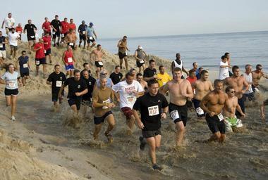 Keywords: Mud Run DVIDS194617.jpg en Runners slosh through the water pit during the Naval Amphibious Base Little Creek's ninth annual Mud Run The Mud Run is an eight-kilometer event on the base surf sand mud and running trails All proceeds from the race benefit the Armed Services YMCA of Hampton Roads 2009-08-08 Robin Hicks https //www dvidshub net/image/194617 090808-N-+++++-082 2009-08-13 12 22 NORFOLK VA US PD-USGov-Military-Navy Naval Amphibious Base Little Creek Images from DoD uploaded by Fæ |