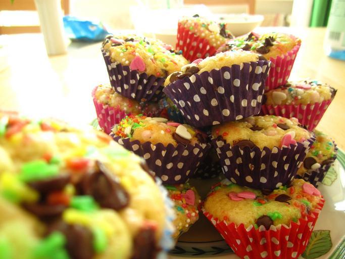 Keywords: muffins colorful baked children's birthday children pastries ornament decoration carnival sweet delicious candy