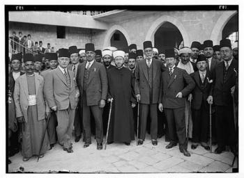 | Keywords: Mufti of Jerusalem 1929.jpg en Arab protest delegations demonstrations and strikes against British policy in Palestine subsequent to the foregoing disturbances 1929 riots An Arab delegation to London The protest delegation of December 1929 <br/> From left to right unknow - Raghib al-Nashashibi - unknown - Amin al-Husayni - Musa al-Husayni Information field Notes Notes Title from Catalogue of photographs lantern slides 1936 On negative 197 Front row fourth from left Grand Mufti of Palestine Haj Amin Husseini Source N Lavsky Identified as related to the 1929 riots based on captions for negatives with neighboring numbers Gift; Episcopal Home; 1978 html LOC-image matpc 03049 http //lcweb2 loc gov/cgi-bin/query/I fsaall app brum detr swann look gottscho pan horyd genthe var cai cd hh yan lomax ils prok brhc nclc matpc iucpub tgmi lamb hec 12 /temp/~pp_VB2I displayType 1 m856sd matpc m856sf 03049 mdb fsaall app brum detr swann look gottscho pan horyd genthe var cai cd hh yan lomax ils prok brhc nclc matpc iucpub tgmi lamb hec Library of Congress Prints and Photographs Division Washington D C 20540 USA American Colony Jerusalem Photo Dept photographer 1929 PD-Matson Haj Amin al-Husseini Raghib al-Nashashibi 1929 Palestine riots Demonstrations and protests in Jerusalem Historical images of people of Jerusalem |