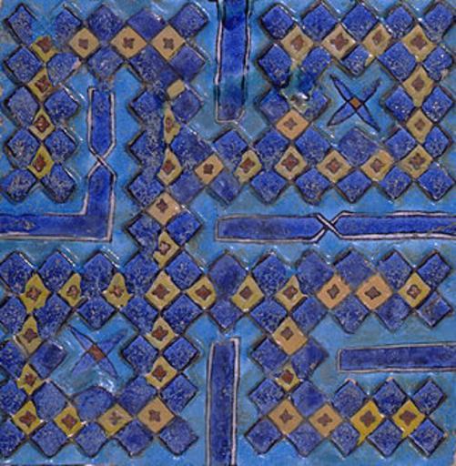 | Keywords: Muhammad calligraphy tile.jpg en Tile with the name Muhammad in square Kufi From a mausoleum in Uzbekistan Samarkand Originally one of a set of 18 framing a doorway showing alternately the names of Muhammad and Ali; 13 are still on the building the remainder are in various museums de Fliese mit dem Namen Mohammed in so genannter quadratischer Kufi-Schrift Vom Portal eines 1386 erbauten Mausoleums in Usbekistan Samarkand Ursprünglich rahmten 18 Fliesen jeweils abwechselnd mit den Namen Ali und Mohammed eine Türöffnung 13 sind noch am Bauwerk erhalten; die restlichen befinden sich in verschiedenen Museen 2012-01-07 http //www smb museum/religionen/islam/lex_image php lang de reihe 1 lexikon_id 73 lexikon_aktion author PD-Art Uploaded with UploadWizard Calligraphy of Muhammad Tiles in Uzbekistan |