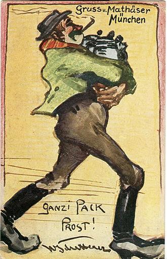 | Keywords: München - Mathäser.jpg en Postcard dated 19 11 1918 Title Greetings from Mathäser brewery Munich de Postkarte datiert 19 11 1918 Titel Grüße vom Mathäser München private collection of Wolfgang Sauber Xenophon anonymous 01 11 2008 PD-old Postcards of Munich Beer steins Breweries |
