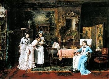 | Keywords: Munkácsy Gyermeklátogatók.jpg Artwork Creator Mihály Munkácsy Gyermeklátogatók A baba látogatói címen is ismert 1879 Oil on canvas cm 149 5 110 Institution Hungarian National Gallery Own scanned by uploader Other versions Versions of this painting <gallery> File Munkácsy Gyermeklátogatók jpg in the Hungarian National Gallery Budapest File Mihály von Munkácsy Besuch b e Wöchnerin 1 jpg In the Neue Pinakothek München File Munkácsy A_baba látogatói jpg In private collection </gallery> Paintings by Mihály Munkácsy in the Hungarian National Gallery 1879 paintings in Hungary Fashion in 1879 Scans Aesthetic Movement PD-old-100 |