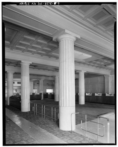 | Keywords: Munseybuilding9.jpg photograph en 9 COLUMN DETAIL ORIGINAL LOBBY BANK - Munsey Building 1327-1329 E Street Northwest Washington District of Columbia DC http //www loc gov/pictures/item/dc0246 photos 027768p/ loc hhh dc0246/photos 027768p Accession number HABS DC WASH 237--9 <gallery> </gallery> HABS DC WASH 237--9 Uploaded with UploadWizard Munsey Building |