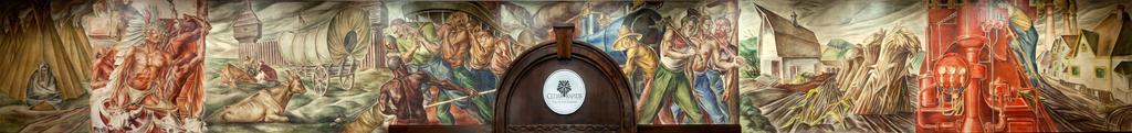 | Keywords: Mural-Federal-Building-Courthouse-Cedar-Rapids-Iowa.jpg en Photograph of mural The Opening of the West 1937 by Robert Francis White at Federal Building U S Courthouse Cedar Rapids Iowa<br>Notes Date 1937; medium tempera Photographed as part of an assignment for the General Services Administration Title date and keywords from information provided by the photographer Credit line Photographs in the Carol M Highsmith Archive Library of Congress Prints and Photographs Division Gift; Carol M Highsmith; 2009; DLC/PP-2009 083 Forms part of Photographs in the Carol M Highsmith Archive More information http //www cedar-rapids org/things-to-see-do/artsculture/pages/cedar-rapids-federal-courthouse-mural aspx History of the Cedar Rapids Federal Courthouse Mural<br>In March 2011 nearly fifty years since being painted over the last time the U S General Services Administration utilized a historic preservation grant to hire Page Conservation Inc Washington D C to uncover the north wall of the mural The wall was created by Francis Robert White and depicts The Opening of the Midwest The panel depicts the suffering of American Indians the struggles of the early settlers slaves and immigrant workers on the Mississippi laborers building the transcontinental railroad the rise of single family farms followed by industry tenements and pollution LOC-image highsm 24902 Creator Carol M Highsmith 2011-10 PD-Highsmith Treasury Relief Art Project Murals in Iowa |