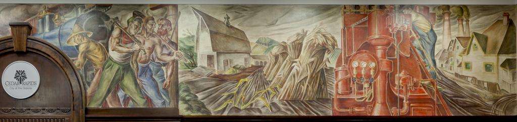 | Keywords: Mural "Opening of the Midwest," by Robert Francis White at Federal Building & U.S. Courthouse, Cedar Rapids, Iowa LCCN2013634329.tif 1 photograph digital tiff file color Notes Gift; Carol M Highsmith; 2009; DLC/PP-2009 083 ; Photographed as part of an assignment for the General Services Administration ; Title date and keywords from information provided by the photographer ; Date 1937; medium tempera ; Forms part of Photographs in the Carol M Highsmith Archive ; Credit line Photographs in the Carol M Highsmith Archive Library of Congress Prints and Photographs Division 2011 Creator Carol M Highsmith Library of Congress Catalog http //lccn loc gov/2013634329 Image download https //cdn loc gov/master/pnp/highsm/24700/24722a tif Original url http //hdl loc gov/loc pnp/highsm 24722 No known restrictions on publication LOC-image highsm 24722 PD-Highsmith Images uploaded by Fæ Photographs by Carol M Highsmith |