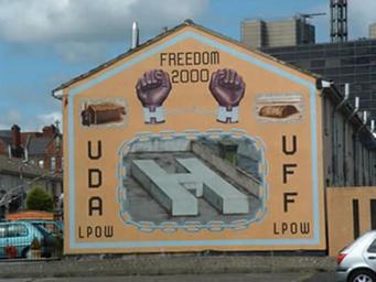 Keywords: Muralbelfast.jpg Belfast Murals at Shankill - a celebration of release of prisoners from the H-block in 2000 Own 2007 Lasse1974 Murals in Belfast Ulster Defence Association Ulster Freedom Fighters 2007 in Belfast
