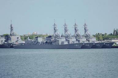 | Keywords: Murasame class destroyers in Pearl Harbor.jpg View of the Japanese Defense Forces ships of the 1st Escort Flotilla Escort Division 48 The ships are JDS MURASAME DD 101 HARUSAME DD 102 YUDACHI DD 103 and KIRISAME DD 104 tied up at bravo pier no 22 Astern partially visible are the JDS SHIMAKAZE DDG 172 and JDS KONGO DDG 173 The ships are here to take part in Operation RIMPAC 2000 Location PEARL HARBOR HAWAII HI UNITED STATES OF AMERICA USA 000601-N-NN970-008 Department of Defense http //www defenseimagery mil/imagery html guid c92a90ead77f7b663ff104b0674eeca14a6cb19d 2000-06-01 Don S Montgomery U S Navy Ret Template PD-USGov-Military-Navy JS Murasame DD-101 JS Harusame DD-102 JS Yƫdachi DD-103 JS Kirisame DD-104 RIMPAC 2000 2000 photographs Japanese warships at Pearl Harbor |