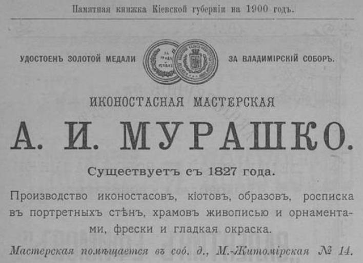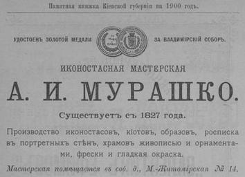 Keywords: Murashko Oleksandr Ivanovych, advertising studio, 1900.jpg en Murashko Oleksandr Ivanovych advertise iconostasis workshop 1900 uk Реклама іконостасної майсте ні у ашка Олександ а Івановича 1900 ік 2013-07-12 22 06 32 http //oldbooks ax3 net/BookLibrary/16001-Pam -knizhki-Kievskoy-gub/1899 -Pamyatnaya-knizhka-Kievskoy-gubernii-na-1900-god -18-y-god html Памятная книжка Киевской губе нии на 1900 год Київський Губе нський статистичний комітет Custom license marker 2013 07 12 PD-old Uploaded with UploadWizard Oleksandr Murashko |