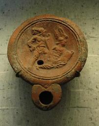 Keywords: Murmillo Thrace lamp Louvre Cp4628.jpg Gladiatoren Murmillo mit untypischem Helm kämpft gegen einen Thraex Ölläpchen Gladiators Murmillo with untypical helmet fighting a Thraex oil lamp Combat de gladiateurs un mirmillon et un thrace sur une lampe à huile ca 130 200 AD terracotta cm 9 5 7 4 2 3 Institution Louvre lobject department Greek Etruscan and Roman antiquities room ID 188 20612 object history ProvenanceEvent excavated Italy credit line Campana Collection accession number Cp 4628 own photo date 2006 Marie-Lan Nguyen artwork license PD-old-100 photo license other versions 2nd-century pottery in France Gladiators on ancient Roman oil lamps Myrmillones Thraces Campana Collection Ancient Roman oil lamps in Paris Roman antiquities in the Louvre - Room 32 |