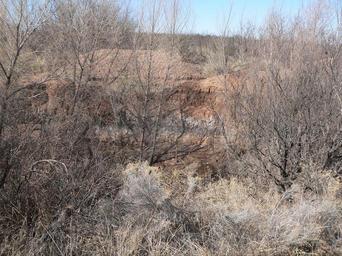 Keywords: Murray Springs Clovis site, Clanton clay black mat 1.JPG en Murray Springs Clovis site located east of Moson Road north of Arizona Highway 90 west of Sierra Vista Arizona A sign identifies the dark layer in the cut bank of the wash opposite as the Clanton clay 'black mat' beneath which Clovis remains were sought by archaeologists 2016-03-12 17 15 16 own Ammodramus other versions 31 570838 -110 178744 cc-zero Pictures by Ammodramus Murray Springs Clovis site Cochise County Arizona