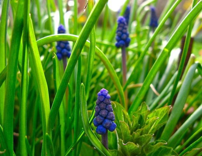Keywords: muscari grape hyacinth flowers spring bloom blue spring flower green plant nature garden