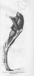 Keywords: MusclesMbreCaudIntChevalChauveau1890CM.jpg en The internal muscles of the hindleg of the horse Equus caballus fr Les muscles internes du membre caudal du Cheval Equus caballus <br /> 1 droit cranial antérieur de la cuisse rectus femoris 2 vaste médial vaste interne vastus medialis 3 pectiné m pectineus 4 grand adducteur de la cuisse m adductor magnus 5 petit adducteur m adductor brevis 6 demi-membraneux semimembranosus 7 portion charnue du fléchisseur du métatarse 7' son tendon d'insersion au petit cunéiforme 8 sa corde tendineuse 9 extenseur antérieur des phalanges 10 la bride qu'il reçoit du ligament suspenseur du boulet 11 jumeau interne 11' tendon terminal des jumeaux m gastrocnemius 12 poplité m politeus 13 fléchisseur oblique des phalanges 14 fléchisseur profond des phalanges perforant m flexor digitorum profundus 14' son tendon 15 sa bride métatasienne 16 tendon du fléchisseur superficiel des phalanges perforé planto-perforé m flexor digitorum superficialis 16' anneau qu'il fournit au perforant A ligament latéral interne de l'articulation fémoro-tibiale B ligament suspenseur du boulet <br /> ” Chauveau Auguste Arloing Saturnin Traité d'anatomie comparée des animaux domestiques <br /> 1 064 p page 371 1890 Paris Lib J B Baillière et Fils domaine public décès des auteurs 1917 et 1911 Meyer Ch 2011-04-04 PD-old Horse leg anatomy Horse muscles Hindlimbs |