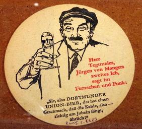 | Keywords: Musée Européen de la Bière, Beer coaster pic-048.JPG Dortmunder Union Bier Photographed through glass own 2012-08-16 16 14 34 AlfvanBeem CC-zero Trademarked Musée Européen de la Bière Nostalgia by Alf van Beem Beermats Dortmunder style beer |