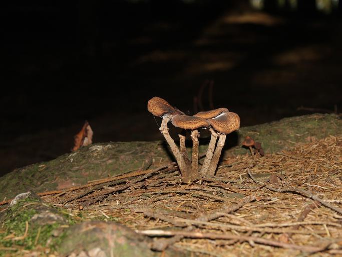Keywords: mushroom nature forest leaves autumn mood atmosphere moss light brown datailaufnahme close mushroom head forest floor
