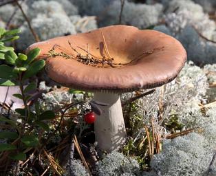 Keywords: mushroom russula tasty food brown grass dry leaves kitchen mushrooms edible autumn