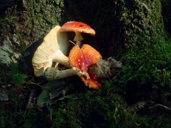 Keywords: mushrooms fly fungi autumn forest moss tree bark