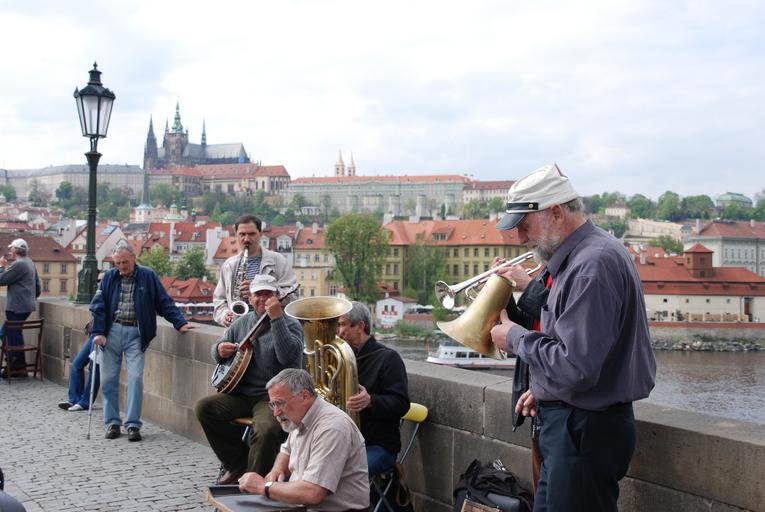 Keywords: music orchestra busker street artist charles bridge bridge prague prague castle czech republic