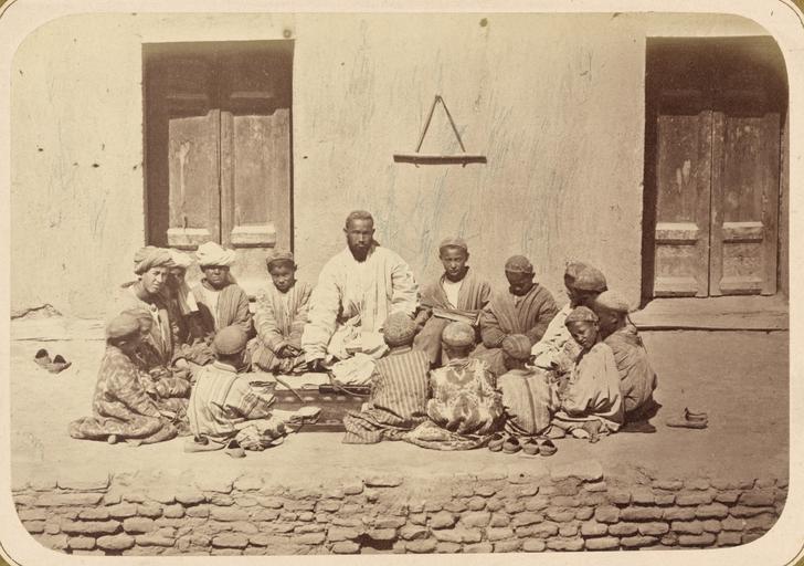 Keywords: Muslim School, or Mekteb-khane WDL10757.png Artwork ru Кун Александ Людвигович 1840 1888 гг fr Kun Aleksandr L 1840-1888 en Kun Aleksandr L 1840-1888 zh 亚历山大·L· ,1840-1888 年 pt Kun Aleksandr L 1840-1888 ar كُن، ألكسندر ل ، 1840-1888 es Kun Aleksandr L 1840-1888 ru усульманская школа или ектеб-ханэ fr École musulmane ou mekteb-khane en Muslim School or Mekteb-khane zh 穆斯林学校或 Mekteb-khane pt Escola muçulmana ou Mekteb-khane ar مدرسة مسلمين أو مكتب-خانة ru Эта фотог афия входит в этног афическую часть <em> Ту кестанского альбома </em><em></em>  всесто оннего исследования Цент альной Азии п едп инятого после того как в 1860-х годах в егионе установилось господство Российской импе ии Альбом созданный по аспо яжению гене ала Константина Пет овича фон Кауфмана 1818 1882 годы пе вого гене ал-губе нато а оссийского Ту кестана состоит из четы ех частей в шести томах «Часть а хеологическая» два тома «Часть этног афическая» два тома «Часть п омысловая» один том и «Часть исто ическая» один том Основным составителем альбома был оссийский востоковед Александ Людвигович Кун аботавший совместно с иколаем Венедиктовичем Богаевским В альбоме п едставлено около 1200 фотог афий а также а хитекту ные планы аква ельные исунки и ка ты «Часть этног афическая» включает в себя 491отдельную  фотог афию на 163 листах а фотог афиях изоб ажены п едставители азличных на одов егиона листы 1 33 повседневная жизнь и итуалы листы 34 91 а также виды де евень и го одов уличные то говцы и комме ческая деятельность листы 92 163 <br> альчики; Этног афические фотог афии; усульмане; Фотог афические исследования; Школы; Студенты; Учителя; Тю кские на оды fr Cette photographie est extraite de la partie ethnographique de l'<em>Album du Turkestan</em> étude visuelle complète de l'Asie centrale entreprise après que l'Empire russe prit le contrôle de la région dans les années 1860 Commandé par le général Konstantin Petrovich von Kaufman 1818 1882 premier gouverneur général du Turkestan russe l'album est composé de six volumes en quatre parties  la partie archéologique deux volumes la partie ethnologique deux volumes la partie sur les métiers un volume et la partie historique un volume L'album fut essentiellement compilé par l'orientaliste russe Aleksandr L  Kun assisté de Nikolai V  Bogaevskii Il comporte près de 1200 photographies et inclut également des plans architecturaux des dessins à l'aquarelle et des cartes La partie ethnographique compte 491 photographies sur 163 planches montrant des individus des différentes peuplades de la région planches 1 à 33 des scènes de la vie quotidienne et des rites planches 34 à 91 ainsi que des vues de villages et de villes de vendeurs ambulants et d'activités commerciales planches 92 à 163 <br>Garçons; Photographies ethnographiques; Musulmans; Inventaires photographiques; Écoles; Étudiants; Enseignants; Peuples turciques en This photograph is from the ethnographical part of <em>Turkestan Album</em><em> </em>a comprehensive visual survey of Central Asia undertaken after imperial Russia assumed control of the region in the 1860s Commissioned by General Konstantin Petrovich von Kaufman 1818 82 the first governor-general of Russian Turkestan the album is in four parts spanning six volumes Archaeological Part two volumes ; Ethnographic Part two volumes ; Trades Part one volume ; and Historical Part one volume The principal compiler was Russian Orientalist Aleksandr L Kun who was assisted by Nikolai V Bogaevskii The album contains some 1 200 photographs along with architectural plans watercolor drawings and maps The Ethnographic Part includes 491 individual photographs on 163 plates The photographs show individuals representing the different peoples of the region Plates 1 33 ; daily life and rituals Plates 34 91 ; and views of villages and cities street vendors and commercial activities Plates 92 163 <br>Boys; Ethnographic photographs; Muslims; Photographic surveys; Schools; Students; Teachers; Turkic peoples zh 这张照片出自<em> 其斯 相册 </em><em> </em>的民族部分,该相册是俄罗斯 国 19 世纪 60 年代取得中亚控制 后, 手制 的 部针对该 区的综合 图像调查记录 相册由俄罗斯驻 其斯 (俄罗斯 国中亚属 的名称)首任 康斯 丁·彼得罗维奇·凡· 夫曼(Konstantin Petrovich von Kaufman,1818 82 年)将军赞助完成,共分六卷,四个部分: 古部分 (两卷); 民族部分 (两卷); 贸易部分 ( 卷)和 历史部分 ( 卷) 相册的主要编纂人是俄罗斯 方学 亚历山大·L· Aleksandr L Kun 亚历山大是 尼可莱·V·柏盖维斯基 Nikolai V Bogaevskii 的协助下完成相册的编纂 相册共含 1200 张照片,另 建筑平 图 水彩画和 图 民族部分 包括 491 张个人照,占 163 页 照片展现了该 区各个民族的人物形象(1-33 页) 日常生活和礼仪(34-91 页)以及城市 庄 街头摊贩和商业活动 景(92-163 页) <br>