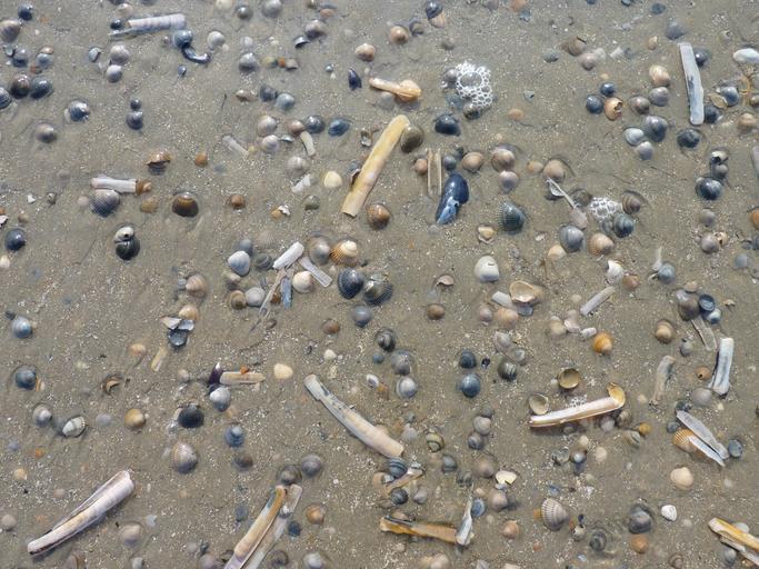 Keywords: mussels beach water sea mussel shells nature sand beach north sea background
