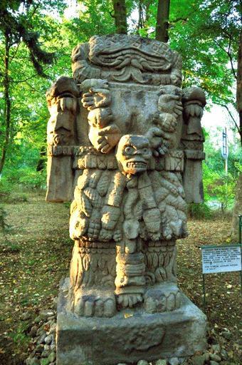 Keywords: Muzeumogrod1.jpg pl Aztecka bogini życia i śmierci Coatlicue w Muzeum Arkadego Fiedler own Moai date Coatlicue Statues in Poland Arkady Fiedler Museum in Puszczykowo Aztec stone figurines and statues