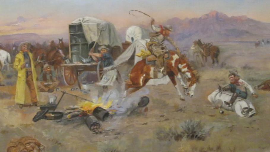 Keywords: MVI 2801 Russell's Bronc in Cow Camp.jpg title Bronc in Cow Camp own Billy Hathorn I took the photo with a Canon Camera 2-25-10 Creator Charles Marion Russell Amon Carter Museum painting 1897 PD-old-70 Works by Charles Marion Russell in the Amon Carter Museum Paintings in the Amon Carter Museum 1897 paintings |