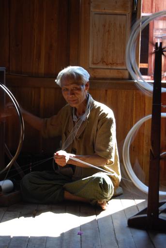 Keywords: myanmar old man silk spinning traditionally