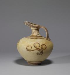 Keywords: Mycenaean - Long-Beaked Jug - Walters 482098 - View A.jpg This full-bodied jug has a long beak-like spout derived from Minoan models On its belly are simple designs based on the sea animal called the nautilus The image is dominated by the stylized tentacles spiraling from the shell ca 1425 BC late Helladic IIB-Helladic IIIA terracotta cm 26 7 24 1 ; foot cm 7 6 diam accession number 48 2098 3589 Robert Hecht Jr Maryland 1957 Hesperia Art firm of Robert Hecht Jr Philadelphia 1957 Hesperia Art III no 88 Walters Art Museum 1957 by purchase Museum purchase with funds provided by the S A P Fund 1957 In Search of Ancient Treasure 40 Years of Collecting The Walters Art Gallery Baltimore 1978 place of origin Greece Walters Art Museum license Ancient Greek pottery in the Walters Art Museum Mycenaean pottery Media contributed by the Walters Art Museum needs category review |
