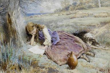 Keywords: Myles Birket Foster The shepherdess.jpg The shepherdess monogram Watercolour bodycolor Langswitch erhöht mit heightened with 15 x 22 5 cm http //www bonhams com/ Bonhams by 1899 Creator Myles Birket Foster PD-old-100 Images from Bonhams Myles Birket Foster Watercolor paintings of people Female shepherds in art Paintings of girls reading outdoors |