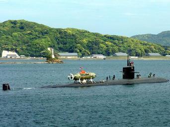 Keywords: Mystic (DSRV-1)aboard USS La Jolla (SSN-701).jpg US government source public domain Sasebo Japan Apr 25 2002 ”- The Los Angeles-class attack submarine USS La Jolla SSN 701 with the deep submergence rescue vehicle Mystic DSRV-1 attached gets underway to participate in the submarine rescue Exercise Pacific Reach 2002 La Jolla and Mystic will operate with surface ships and submarines from the U S Japan Australia the Republic of Korea and the Republic of Singapore during Exercise Pacific Reach Mystic was specifically designed to fill the need for an improved means of rescuing the crew of a submarine immobilized on the ocean floor It can operate independently of surface conditions or under ice for rapid response to an accident anywhere in the world U S Navy photo by Journalist 3rd Class Wes Eplen 020425-N-0401E-002 Apr 25 2002 PD-USGov USS La Jolla SSN-701 DSRV-1 Mystic submarine 1970 Pacific Reach 2002 April 2002 photographs |