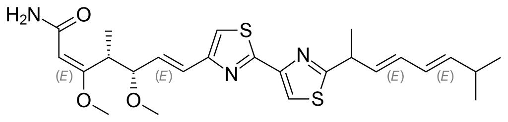 Keywords: Myxothiazol.svg Skeletal formula of myxothiazol Created using http //www acdlabs com/download/chemsk html ACD/ChemSketch 8 0 and http //www inkscape org Inkscape Own 2007-04-28 Fvasconcellos 21 50 28 April 2007 UTC valid svg Alkene derivatives Antifungals Isopropyl compounds Methyl ethers Thiazoles Unsubstituted primary amides |