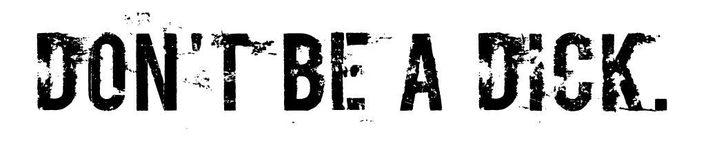 | Keywords: MZ PSA 7.svg Don't be a dick graphic/PSA own 2008-09-23 MZMcBride en wikipedia MZMcBride Original upload log page en wikipedia MZ_PSA_7 svg 2008-09-23 22 56 MZMcBride 212×43× 191789 bytes <nowiki></nowiki> 2008-09-23 22 44 MZMcBride 216×43× 191816 bytes <nowiki> Made by MZMcBride talk using Adobe Illustrator Licensing </nowiki> User page image |