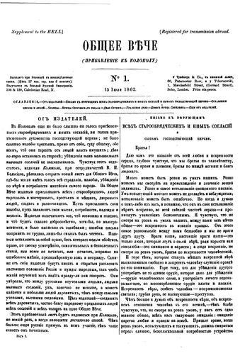 MAKE A MEME View Large Image Общее вече N1.jpeg en The title page of issue Общее вече Common Veche the exile-russian publication of Alexander Herzen and Nikolay Ogarev London 1862 ru Пе вая ст аница пе вого номе а ...