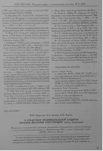 Keywords: МТиПЭ N4 2013 стр 25-31 с 25.jpg ru Эта статья О с едствах индивидуальной защиты о ганов дыхания аботающих была опубликована в в жу нале А едицина т уда и п омышленная экология и азмещена в инте нет с согласия и п и одоб ении авто а и однов еменно заместителя главного едакто а жу нала - п офессо а Владими а Фёдо овича Ки иллова Ст аница 25 uk Ця стаття П о засоби індивідуального захисту о ганів дихання п ацюючих була опублікована в в жу налі А едицина п аці та п омислова екологія і озміщена в інте нет за згодою і п и схваленні авто а і одночасно заступника головного едакто а жу налу - п офесо а Володими а Федо овича Ки илова Сто інка 25 2014-02-12 21 40 42 едицина т уда и п омышленная экология 4 2013г с 25-31 Ки иллов ВФ Бучнев АА Чи кин АВ other versions Статья заг ужена на Викисклад для офо мления её текста в Викитеке на ук аинском языке Стаття завантажена на Вікісховище для офо млення її тексту в Вікідже ела ук аїнською мовою cc-zero Uploaded with UploadWizard Workplace safety of Russia Respirators Masks Equipment of individual protection of respiratory system