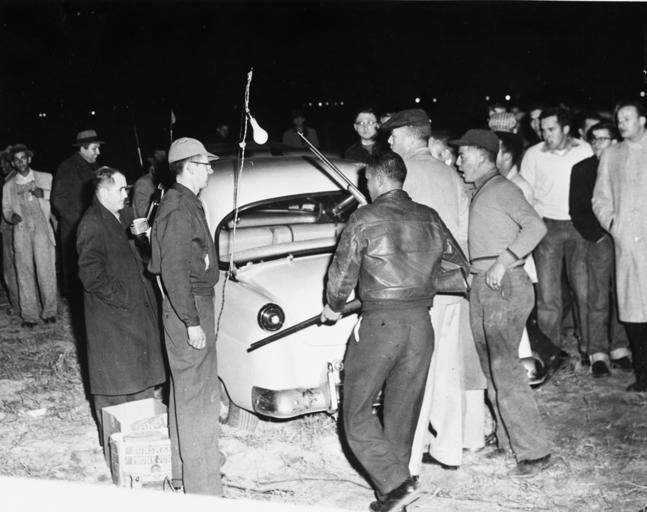 Keywords: ku klux klan kukluxklan robeson county robesoncounty lumbee indians lumbeeindians blackandwhite monochrome black and white White men and Robeson County indians (Lumbee Indians) in crowd with a car and guns (State's Exhibit No.5). Photo taken by Bill Shaw, Fayetteville Observer newspaper photographer. Photo used as state's evidence in North Carolina Supreme Court Case Number 722, State vs James Garland Martin, Spring Term 1959, and Case Number 723, State vs James Cole, James Garland Martin and others to the State unknown by name, Spring Term 1959. From General Negative Collection, State Archives of North Carolina. White men and Robeson County indians (Lumbee Indians) in crowd with a car and guns (State's Exhibit No.5). Photo taken by Bill Shaw, Fayetteville Observer newspaper photographer. Photo used as state's evidence in North Carolina Supreme Court Case Number 722, State vs James Garland Martin, Spring Term 1959, and Case Number 723, State vs James Cole, James Garland Martin and others to the State unknown by name, Spring Term 1959. From General Negative Collection, State Archives of North Carolina. |