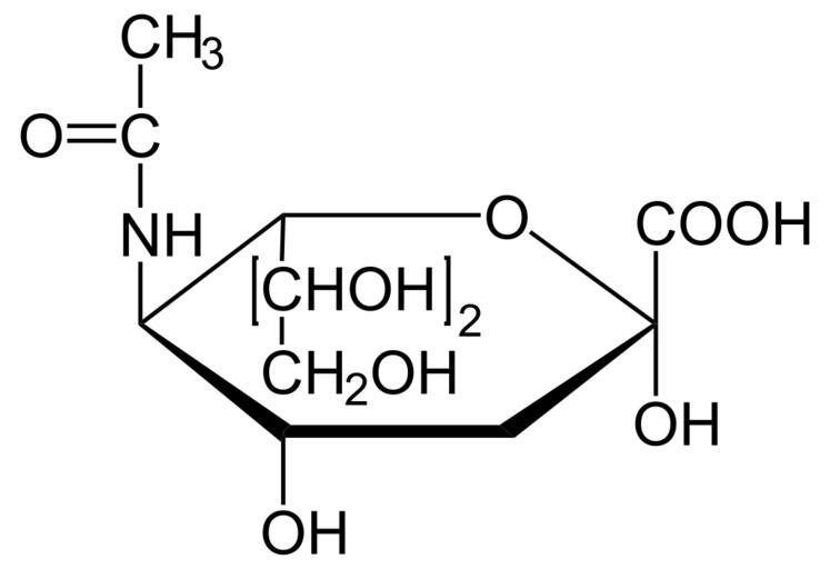 Keywords: N-Acetyl-neuraminsäure.svg Struktur von N-Acetylneuraminsäure Structure of N-acetylneuraminic acid own 2007-02-10 NEUROtiker 200px Neuraminic acid