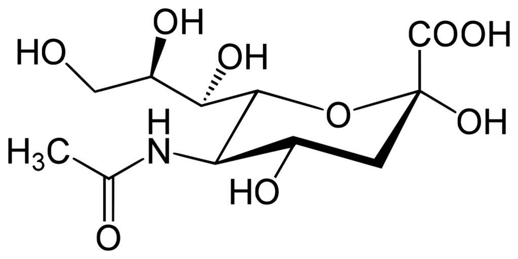 Keywords: N-Acetylneuraminic acid.svg en N-Acetylneuraminic acid; Neu5Ac; NANA alpha anomer de N-Acetylneuraminsäure own Yikrazuul 6 5 09 200px Neuraminic acid