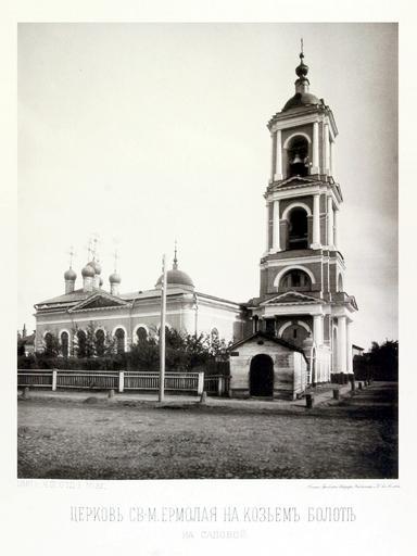 Keywords: N.A.Naidenov (1882). V3.1.22. Yermolay.png Це ковь Е молая Священномученика что на Козьем болоте осква осква ул Большая Садовая 8; Большой Козихинский пе после д 40 Church of Yermolay in Kozye Boloto Goats' Swamp - Garden Ring west of Patriarshy Pond Moscow Plate 22 vol 3 pt 1 of иколай айденов осква Собо ы монасты и це кви 1882 <br>Online source http //imwerden de/pdf/najdenov_moskovskie_sobory_tom3_1882 pdf Photographed in 1881 published in 1882 Nikolai Naidenov 1834-1905 PD-Old-100 thumb left cropped 55 45 59 44618402651258 N 37 35 31 804275512695312 E Demolished churches in Moscow Destroyed in the Soviet Union in 1932 Kozikhinsky Lanes Bolshaya Sadovaya Street 0608 Historical images of Garden Ring Naidenov Album 1882 3 1 22 Photographs by Nikolay Naidenov