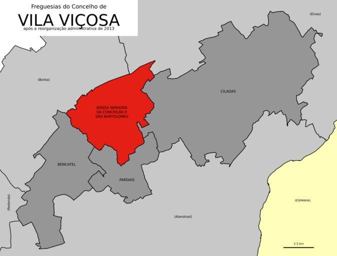 Keywords: N. S. Conceição e S. Bartolomeu (Vila Viçosa) localização.svg pt Localização da freguesia de Nossa Senhora da Conceição e São Bartolomeu no concelho de Vila Viçosa en Location of the civil parish of Nossa Senhora da Conceição e São Bartolomeu within the municipality of Vila Viçosa Portugal 2013-07-30 02 25 16 File Vila Viçosa freguesias 2013 svg Gazilion cc-zero Uploaded with UploadWizard Vila Viçosa