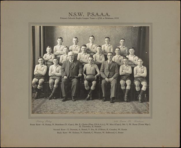 Keywords: archives state records nsw staterecordsnsw newsouthwales blackandwhite sport rugby football school monochrome black and white Title: N.S.W P.S.A.A.A Primary Schools Rugby Leauge Team v Q'ld [Queensland] at Brisbane 1935 Dated: by 31/12/1935 Digital ID: NRS15051_Rugby003 Rights: No known copyright restrictions www.records.nsw.gov.au/about-us/rights-and-permissions We'd love to hear from you if you use our photos/documents. Many other photos in our collection are available to view and browse on our website using Photo Investigator. Title: N.S.W P.S.A.A.A Primary Schools Rugby Leauge Team v Q'ld [Queensland] at Brisbane 1935 Dated: by 31/12/1935 Digital ID: NRS15051_Rugby003 Rights: No known copyright restrictions www.records.nsw.gov.au/about-us/rights-and-permissions We'd love to hear from you if you use our photos/documents. Many other photos in our collection are available to view and browse on our website using Photo Investigator. |